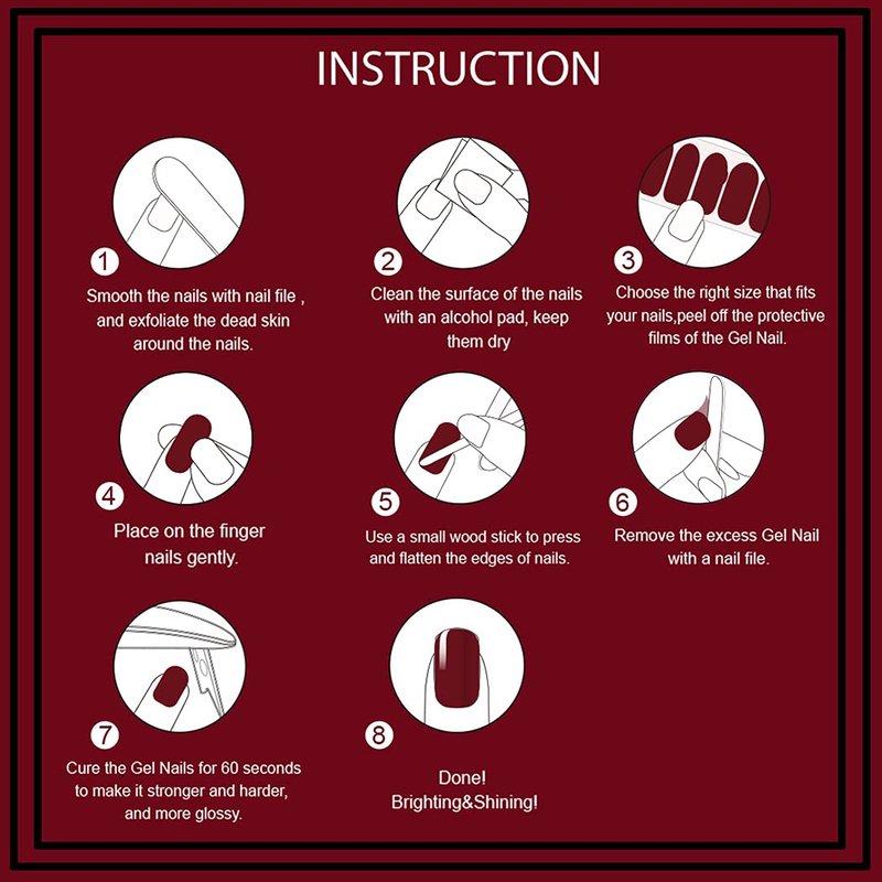 3)Stick on your nails and press gently from the middle to edge, make sure every point of the stickers are stick well and no bubbles.