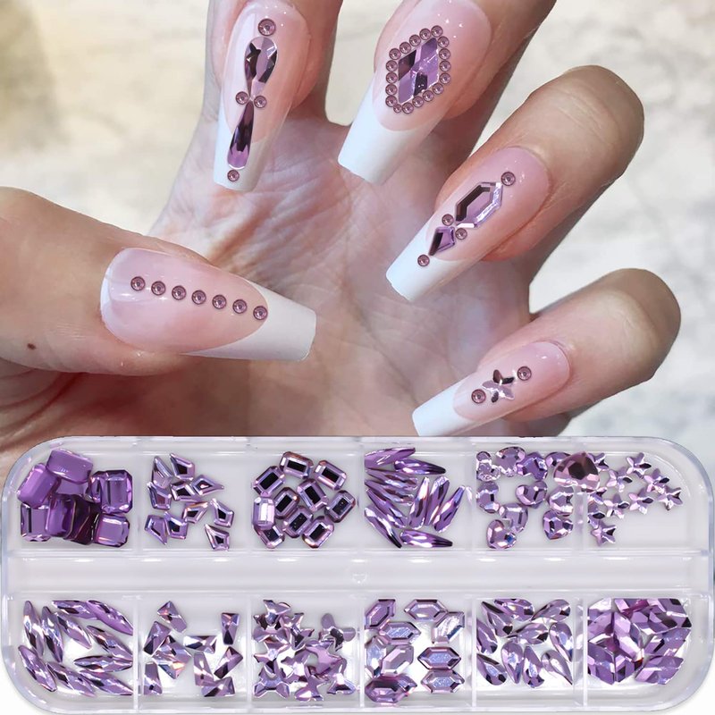 - 【Widely Used Crystal Rhinestones】Our nail jewels set is popular purple color. It works very well for your nail art, DIY craft decorating, clothes, shoes and so on. Is a very personal and fashionable rhinestones for crafts.