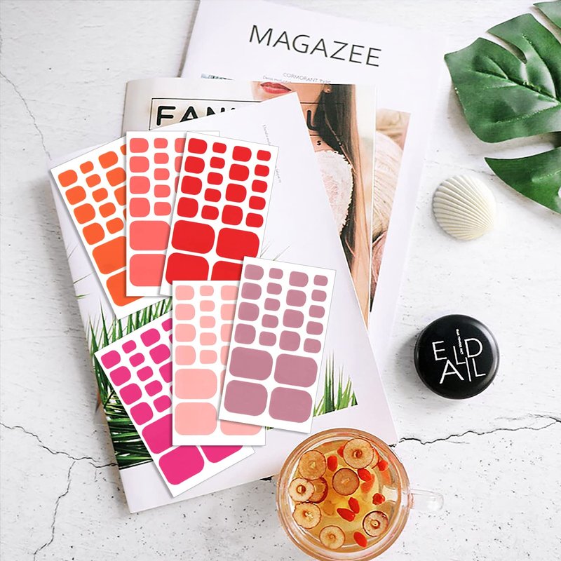 - 【MUTIPLE SOLID DESIGN】: these toe nail full nail wraps including various different solid red series colors and sizes, include different red, pink, brown, etc. which is fashionable to mix up with different style everyday, fit for different occasion and dress, concise but unique, make your nails more dazzling and charming.