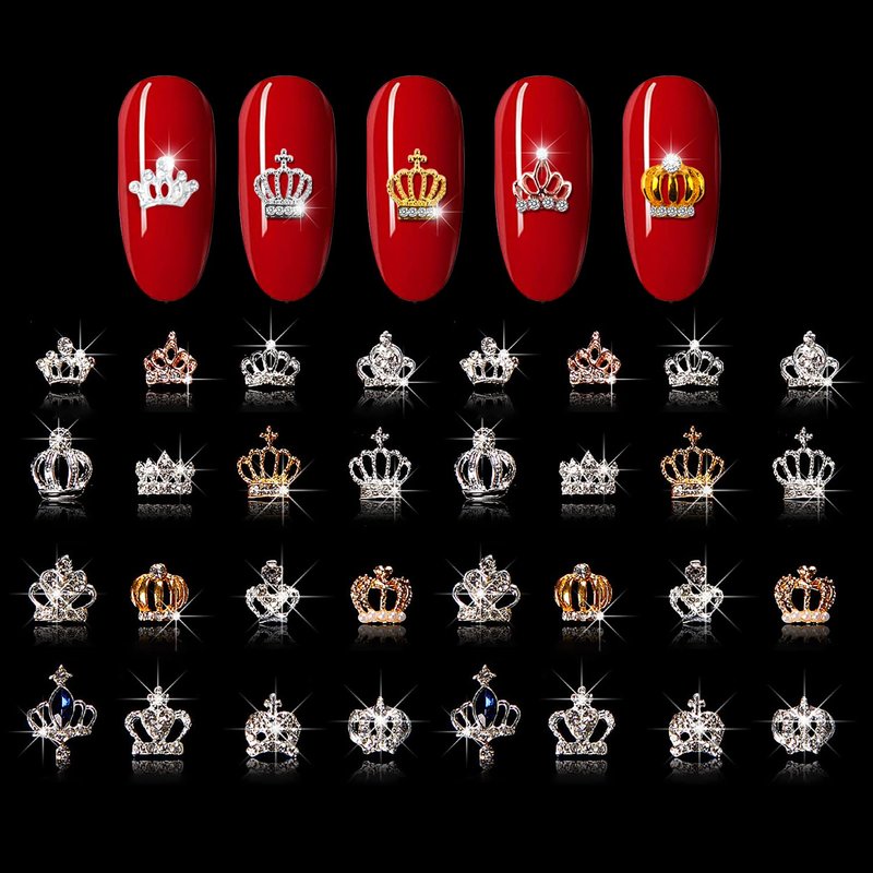 - 32Pcs Alloy Crown Nail Charms for nail art