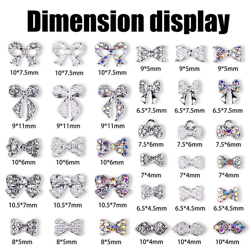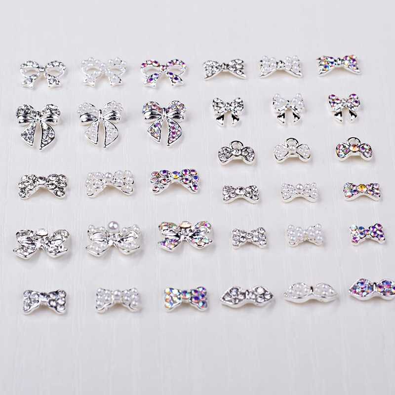 - 【Bows Charms】: Featuring with the design of bowsknots , with silver alloy and AB or clear rhinestones, are delicate and sweet, symbolic and personal, just create exquisite nail art or craft works with the bows charms, representing your own attributes and styles