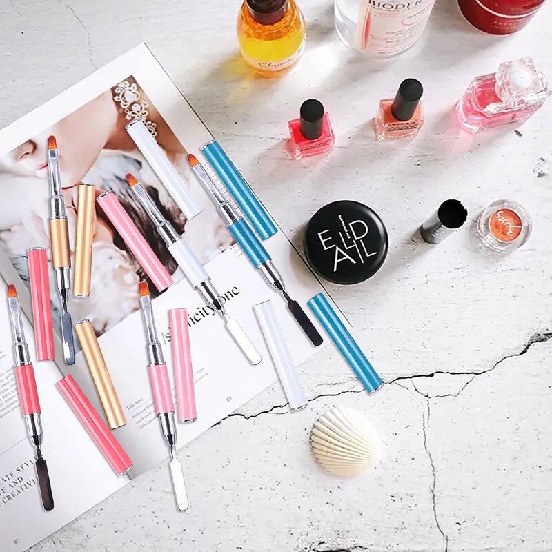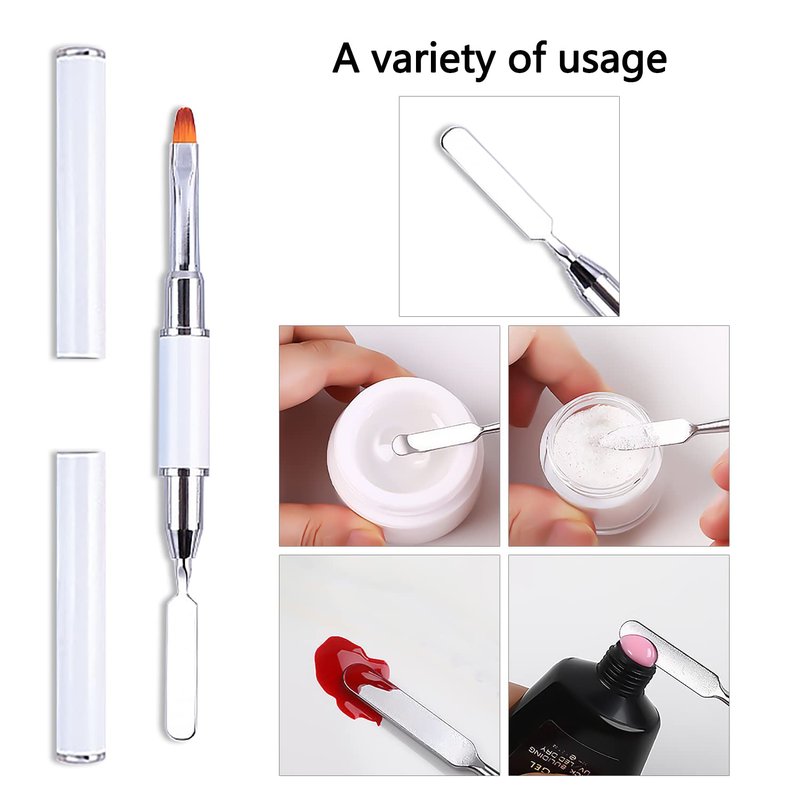 - PACKAGE CONTENT : 5 pcs Professional 2 way gel nail brushes with round tip nail brush and stainless spatula , are special for gel extension nail gel nail art.