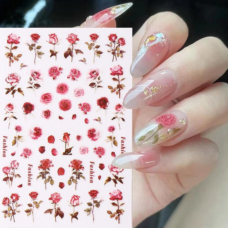 - 【GORGEOUS DESIGN】:The 3D nail art decals set are designed with different style pink red rose designs, vibrant and visually striking nail art designs. Satisfy your rich imagination of nail DIY and create your own nail style !