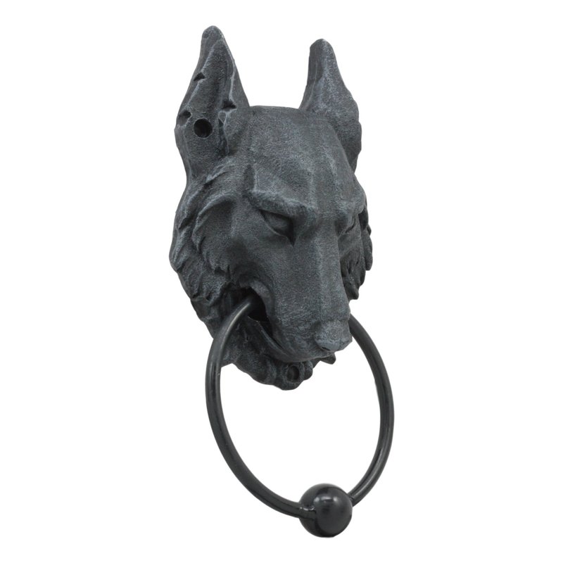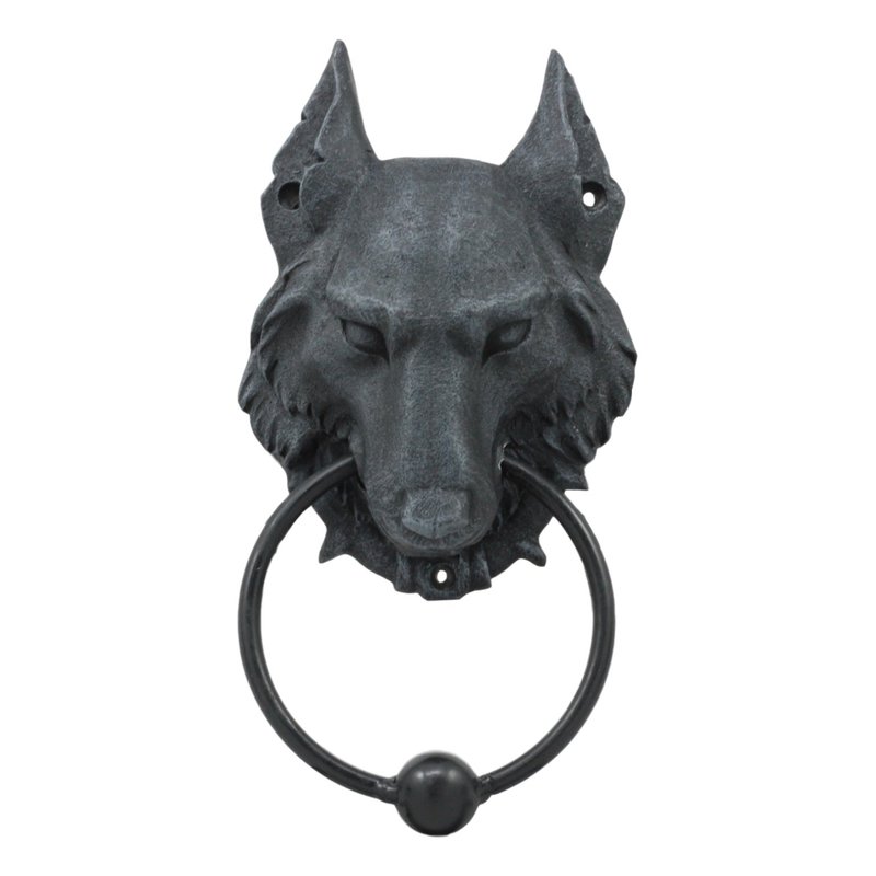 Wolf Moonlit Gargoyle Door Knocker Metal Ring Knocker Ball Sculpture