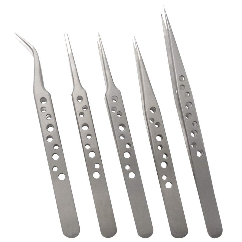 Wolfride Stainless Steel Tweezers Precision Tweezer Tool Set for Electronics Repair, Crafting (5 Pcs)