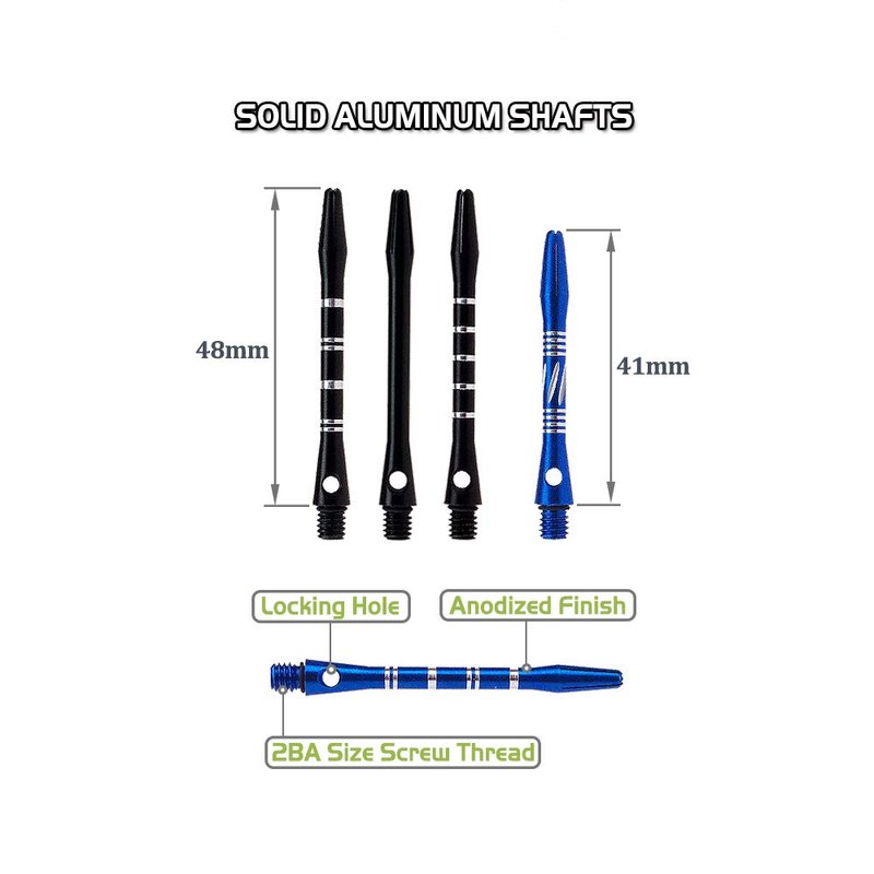 - 2BA SIZE THREAD - The dart shafts are compatible with all 2BA size dart screw thread. Length without threads: 41mm | 48mm.