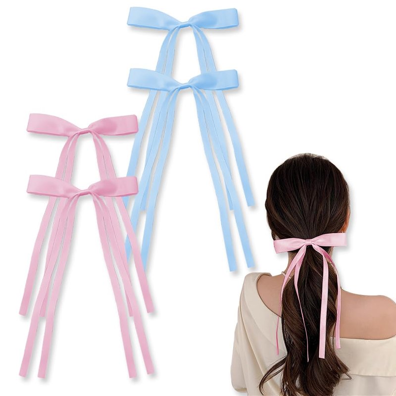 - Large Hair Bows 4pcs Ribbon Bow: 4pcs hair clips for women tassel ribbon bowknot hair adds different fun to your daily life every day, hair clips pink bow are innocent and cute, while blue hair clips are beautiful and charming, giving you a different style, bow hair clips small for women are trendy in now and are one of the essential accessories for girls, women bowknot hair clip vintage satin bow barrette are highly recommended