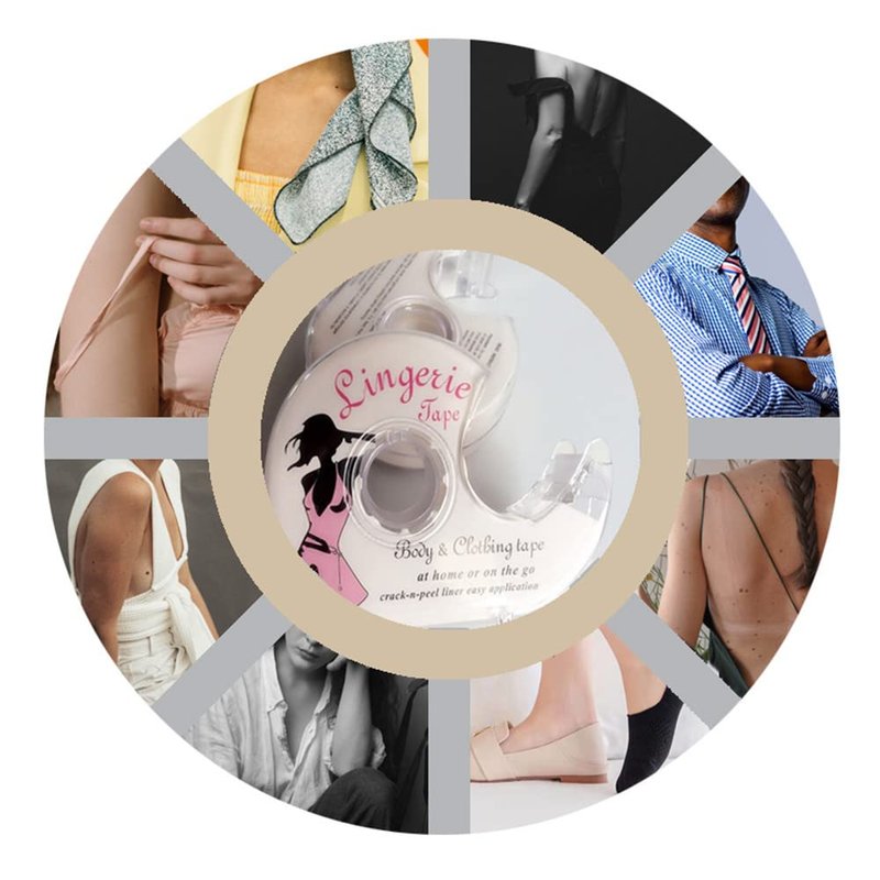 - ✔Easy to Use & Clean ,the skin to fabric tape equipped with dispenser, you can cut any length you need, the fashion tapes in transparent design ,invisible, waterproof against sweat ,it will make you feel comfortable in important occasions