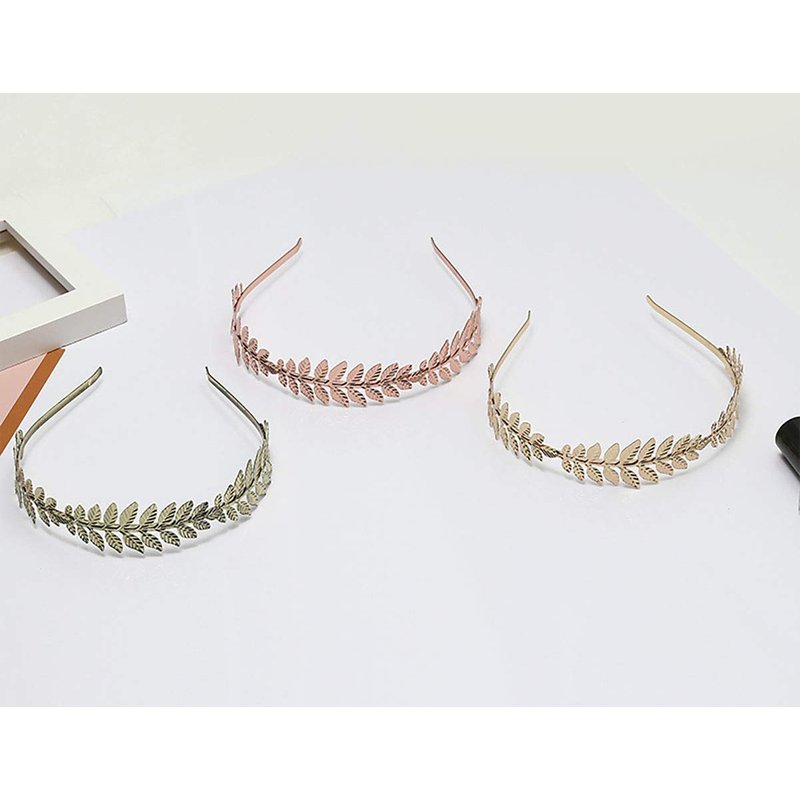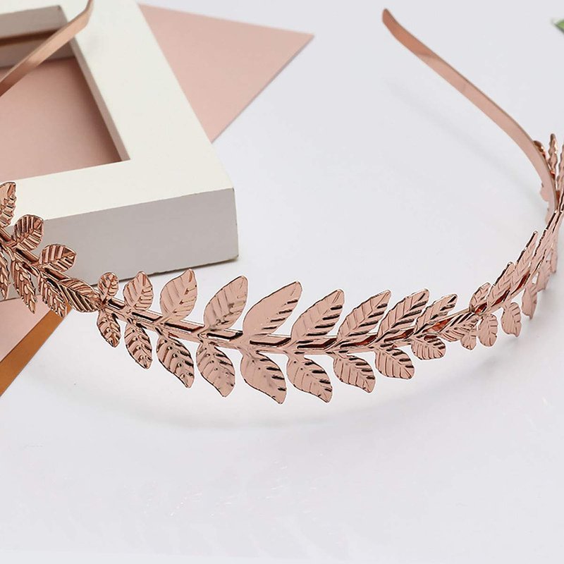Women Lady Greek Roman Laurel Leaf Hair Hoop HeadBand Bridal Hair Crown Headdress Metal Leaf Branch French Hair Bands Hair Accessories (Rose gold)
