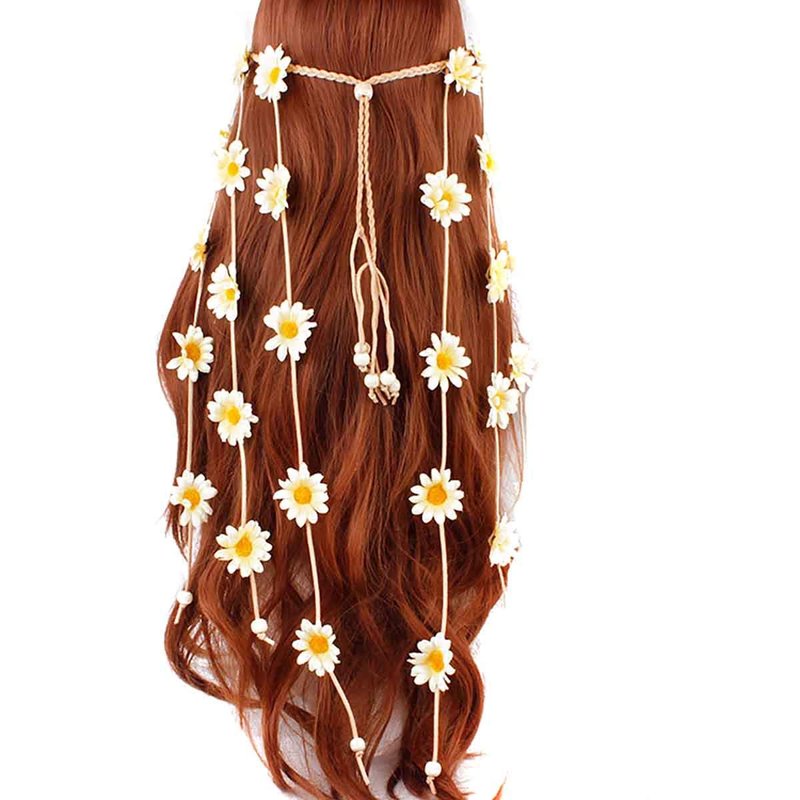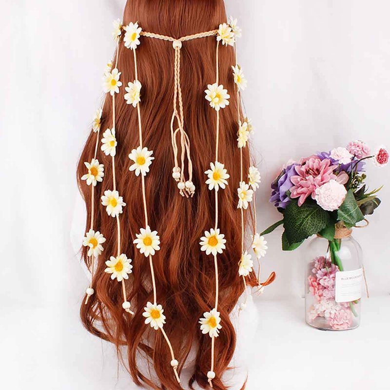Women Lady Handmade Gypsy Hippie Sunflowers Headdress Fascinator Headband Floral Crown Bohemian Flower Headwear Headpiece Hairband (Beige)