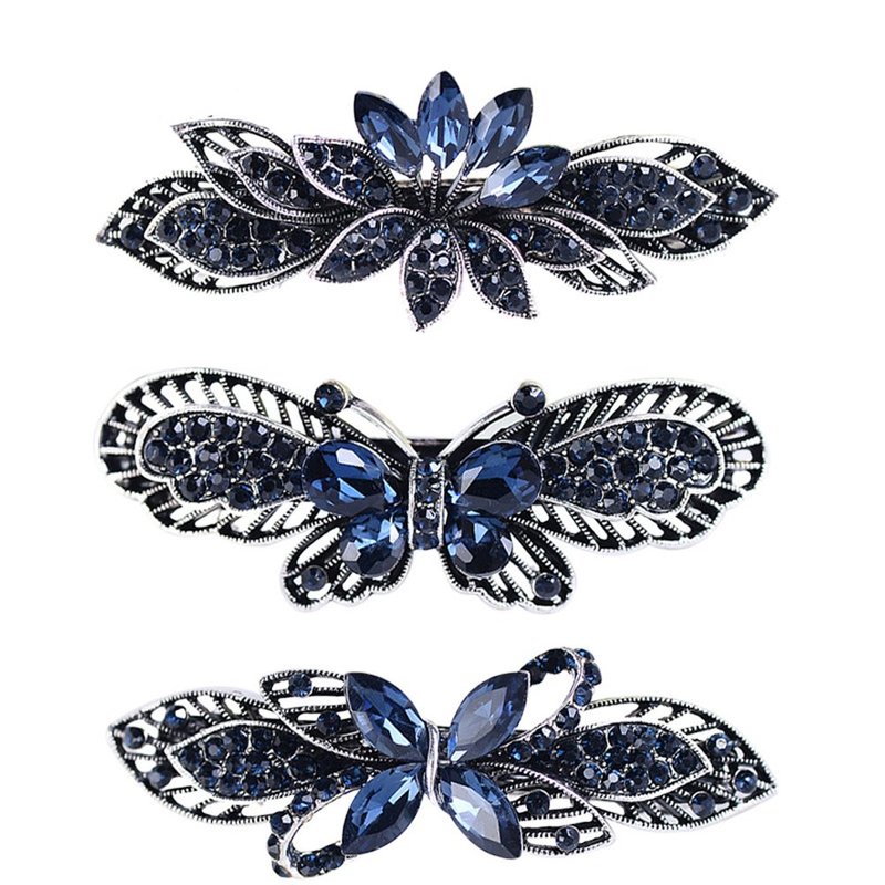 Women Retro Metal Hair Accessories Rhinestone Fancy Hair Clips Pins Butterfly Bow Style Hair Barrettes Spring Clip (Style 1)