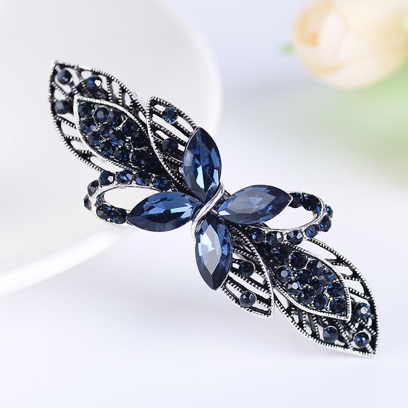 - Vintage style alloy hair clip with rhinestone, intricate design