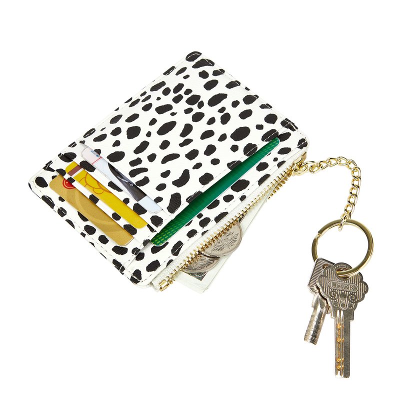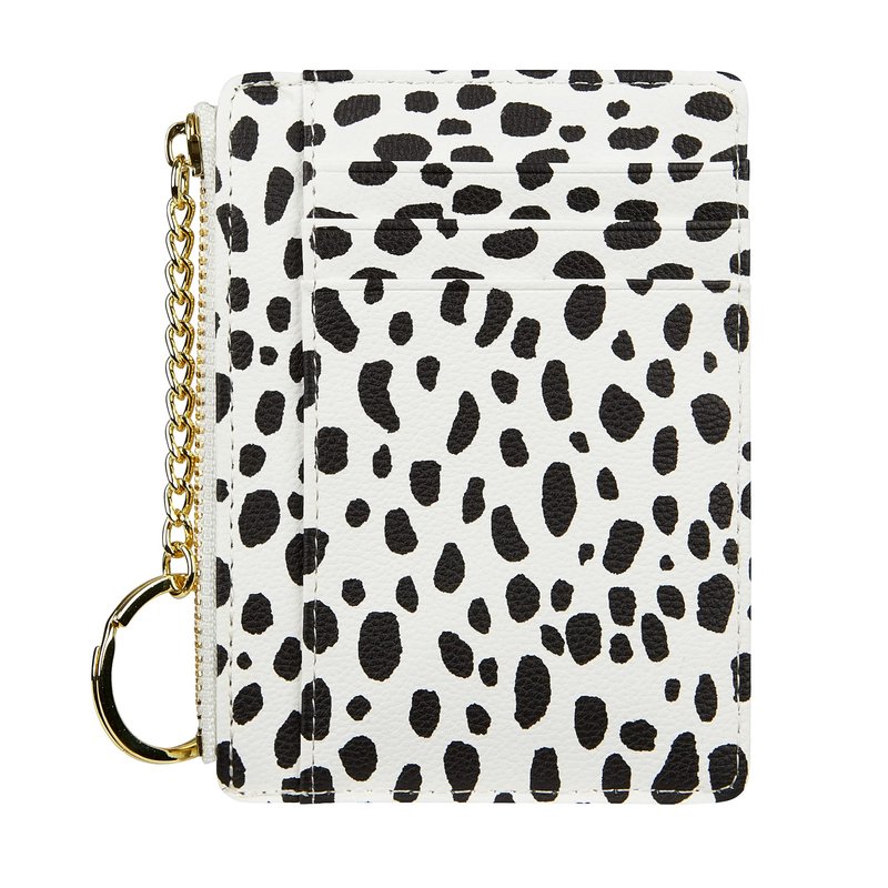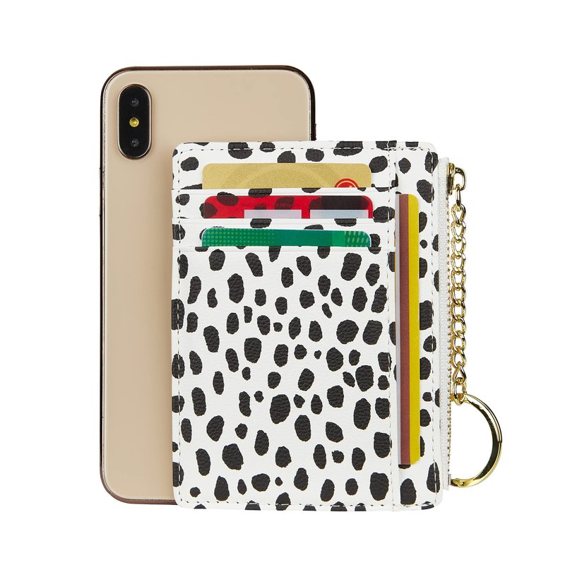 Women's 8 Cards Slim Minimalist Card Holder Coin Changes Purse Keychain Front Pocket Wallet, White Dot