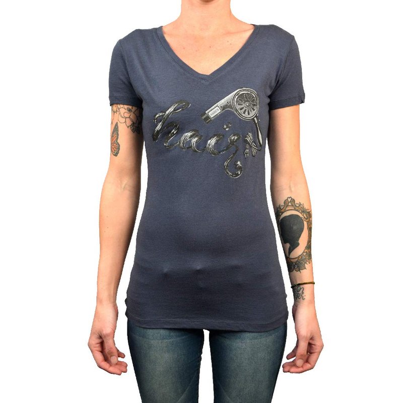 Women's Annex Hair Beauty Hair Dryer Salon Stylist Barber Shop Blue T-Shirt Top