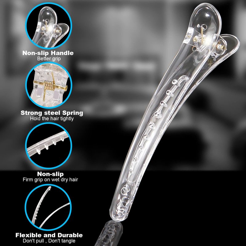 - No Slip:Non-slip grip secures the hold and prevents your fingers from slipping. Each duck billed hair clip is designed with tiny teeth on the upper part of the clip, so they don't slip and the grip is tight. This clips could hold even large sections of hair without slipping or damaging.
