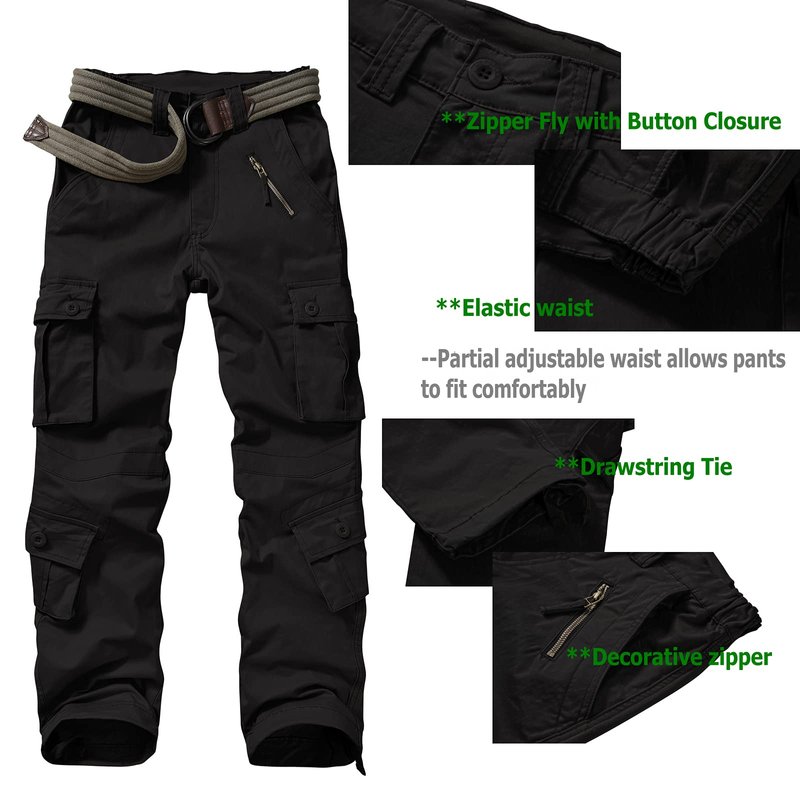 Women's Cotton Casual Military Army Cargo Combat Work Pants with 8 Pocket Black US 8