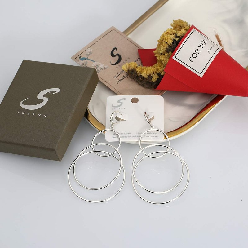 S SUSANN have rich experience in design and development of fashion jewelry. We made each product with love and passion. The pursuit of beauty and perfection is what people expect at any age .Don't underestimate these accessories. and it will fully show the charm and elegance of you! -Product Name:Dangle hoop earrings for women with 3 rings -Size:The lenth is 84mm with 3 circles(22mm/42mm/48mm) -Net weight: 0.22Ounces each side -Materials:Brass In order to ensure that your jewelry keeps the gloss as possible, please pay attention to: - Try to avoid less alkali, bleach - Try to avoid wearing when sweating and bathing - Do not wipe with force to avoid affecting the gloss