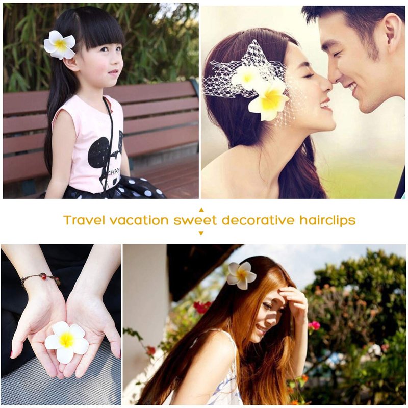 Women's Hawaiian Plumeria Flower Hair Clip Wedding Bridal Hairpin Barrette Hair Accessories - 10 Pieces