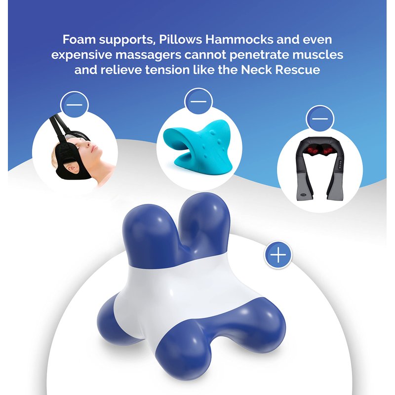 - WHY IT WORKS SO WELL! For example, working online for several hours each day will create chronic neck strain leading to sore muscles, stiff joints and even headaches. The unique finger like massage points of the neck rescue work through the outer muscle layers and put pressure on the deeper muscle to relieve these types of pain fast. Other massages really just rub on the surface they do not penetrate to hit the deeper muscles like the Neck Rescue.