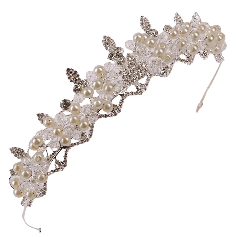 Women's Tiara - Crown for Henna Wedding Party | Glitter Hair Accessories for Bridal Birthday Pageant Prom Halloween Cos-play Costume Christmas Party, Princess Crowns | Crystal Glass Beads - Pearl