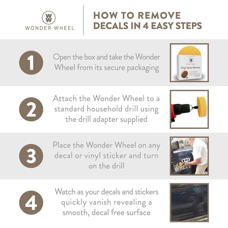 The Wonder Wheel is the Fast and Effective way to easily take off old baked on decals, stickers, and vinyl in Minutes.