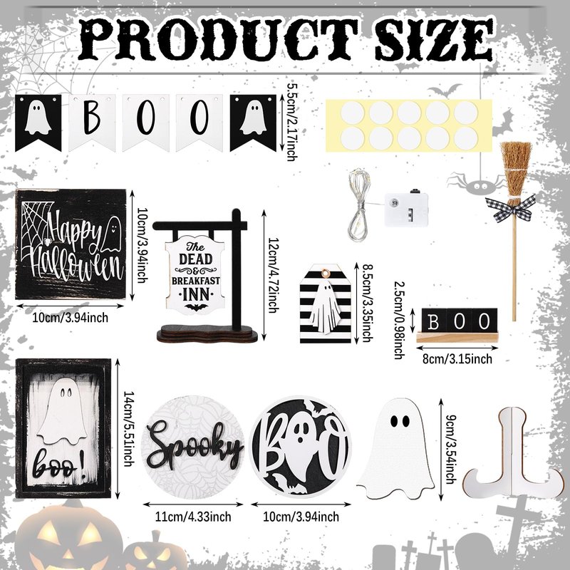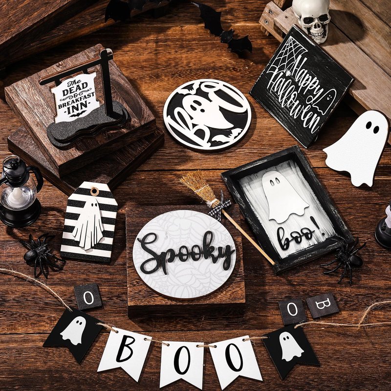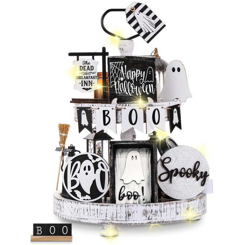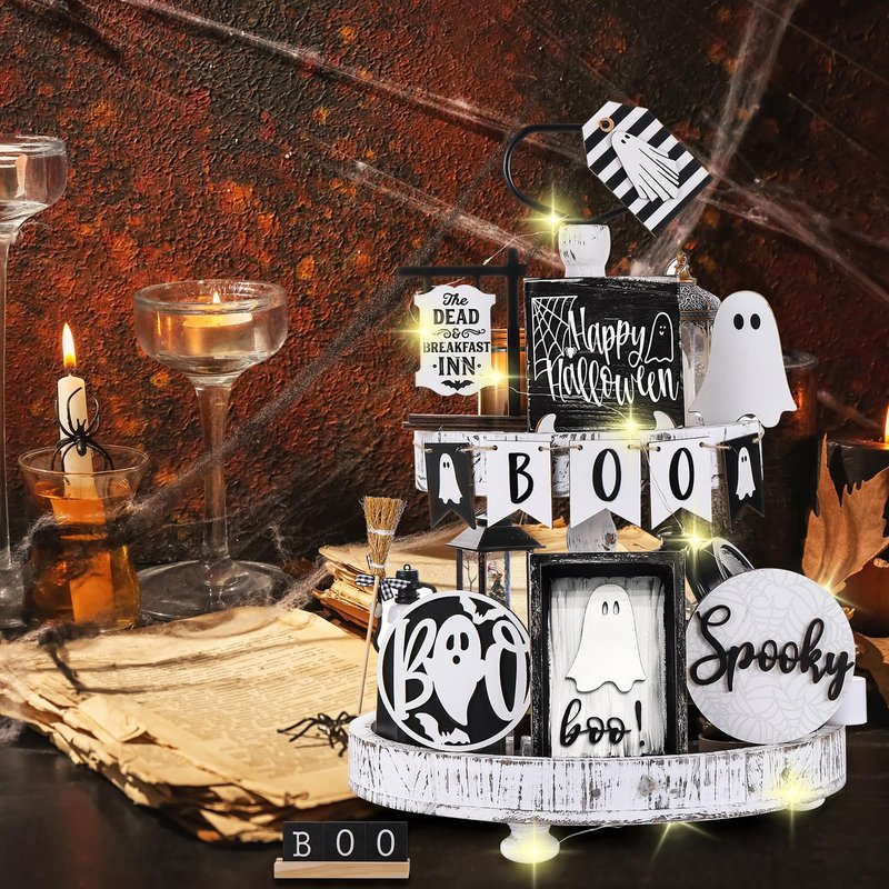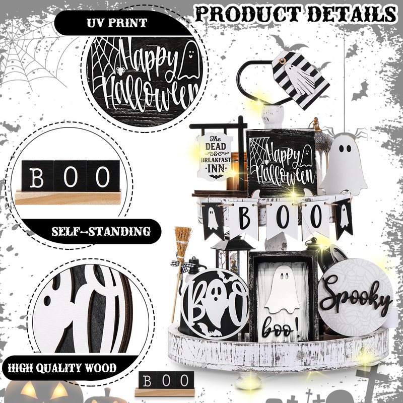 - Halloween Aesthetics: these halloween decorations for tiered tray are full of ghost elements, enhancing the Halloween settings in your space; Designed and crafted to fit into the Halloween atmosphere, these decorations will intensify the festival's spirit; Let these stylish and themed decorations make a unique Halloween atmosphere for you
