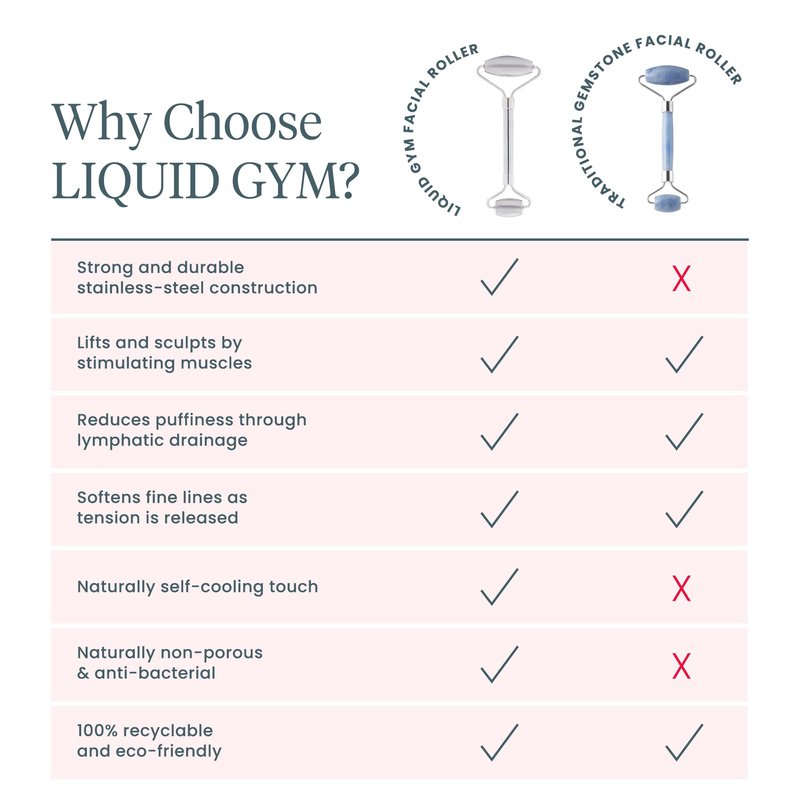 - 𝗥𝗘𝗟𝗜𝗘𝗩𝗘 𝗧𝗘𝗡𝗦𝗜𝗢𝗡 𝗔𝗡𝗗 𝗦𝗢𝗙𝗧𝗘𝗡 𝗟𝗜𝗡𝗘𝗦 𝗙𝗢𝗥 𝗦𝗠𝗢𝗢𝗧𝗛𝗘𝗥 𝗦𝗞𝗜𝗡 - Using the LIQUID GYM Roller is also a relaxing experience that can help to relieve tension in your face. As you use this facial roller massager, fine lines are softened, leaving your skin looking smoother and more radiant.