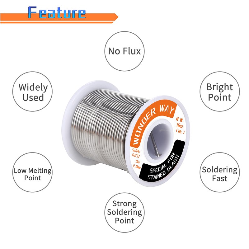 Wonderway Sn63/Pb37 Solder Wire For Stained Glass, No Flux Welding Soldering Tin, Dia 2.0mm (1lb)