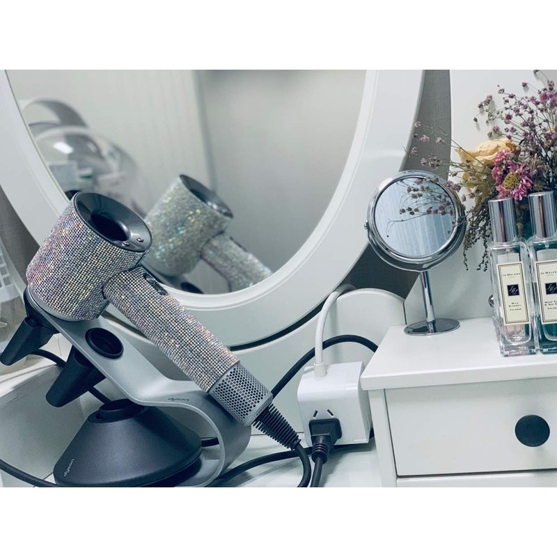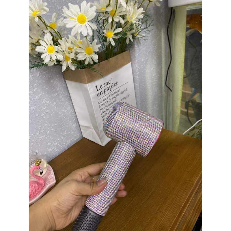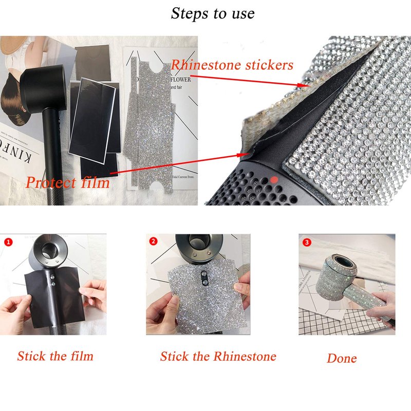 - Rhinestone stickers bling your dyson hair dryer. It is so pretty in person and you will get a lot of complements.