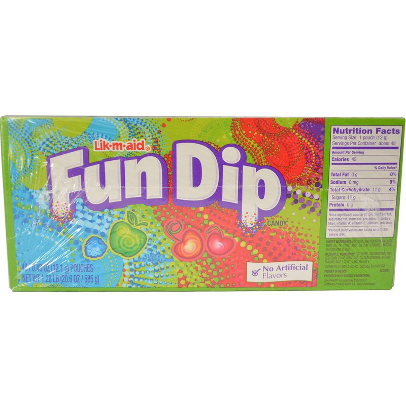 - SWEET FUN: Lik-M-Aid Fun Dip is a fun, interactive candy experience. First, you dip. Then you lick. Then, when you're done with the sweet candy powder, you can even eat the stick