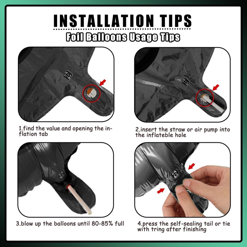 1. Children should use these balloons under the supervision of an adult. 2. Please don't over-inflate these balloons to prevent bursting, 80-90% is fine. 3. Keep these balloons away from pointed objects and avoid exposure to direct sunlight. 4. Please allow slight color differences due to different monitors and the lighting during photo shooting. 5. Please allow slight size errors due to manual measurement.