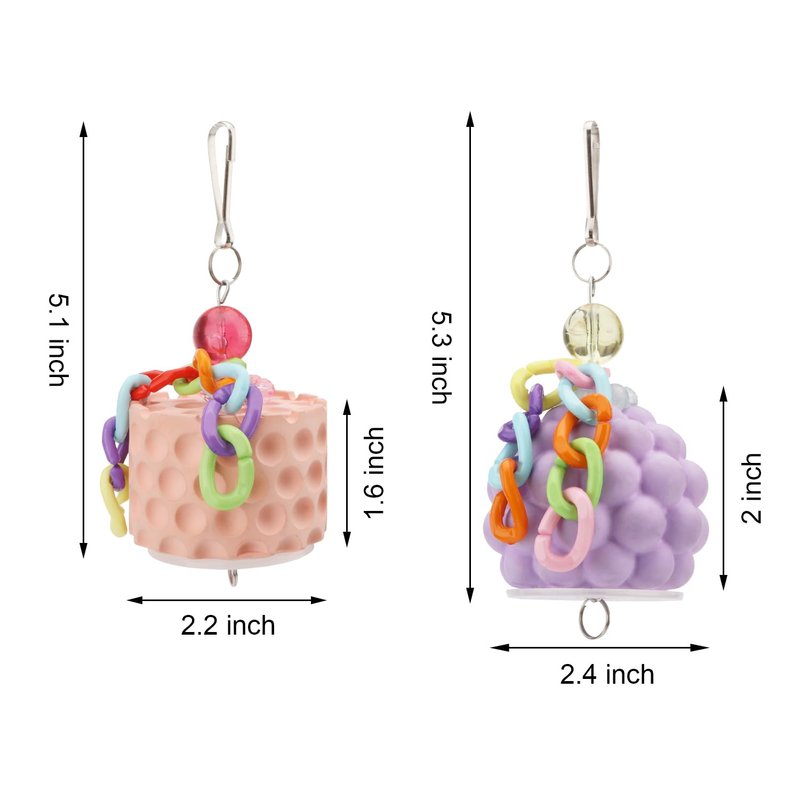 - Fun bird toys have bright colors that will attract the attention of feathered friends when you place the toy inside the bird cage. Uneven surface is designed for better trimming and cleaning of the bird's beak to keep the beak healthy