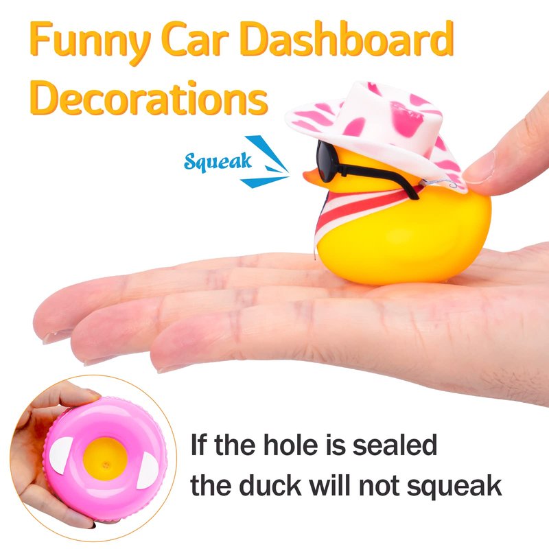 wonuu 2PCS Car Rubber Duck Decoration, West Cowboy Duck Car Dashboard Decoration Accessories With Mini Swim Ring Cowboy Hat Scarf and Sunglasses(C_pink galsses&white hat)