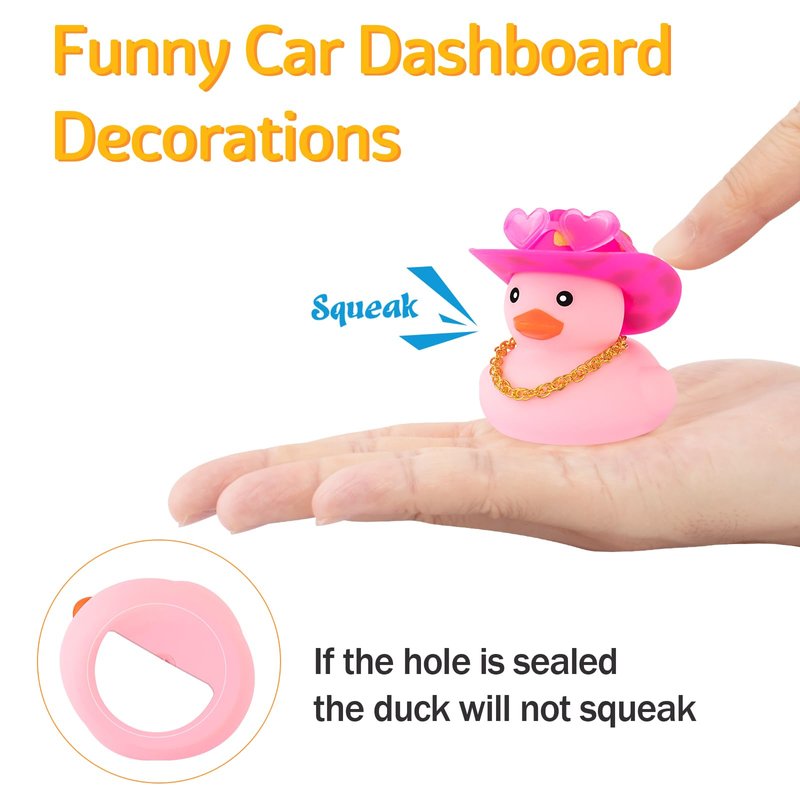 - Funny: It is interesting that these rubber ducks will squeak when you squeeze it. The car dashboard decoration duck is made of premium rubber material, odorless, fade-resistant and safe, smooth and soft, flexible and not easy to be destroyed.