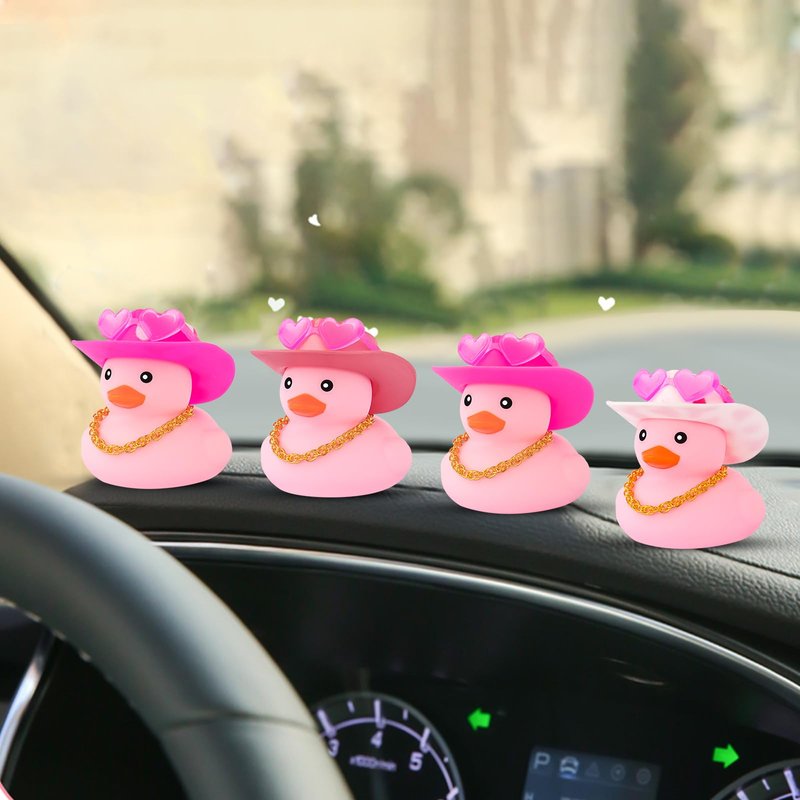 wonuu Pink Rubber Duck with Heart-Shaped Sunglasses Car Ducks Small Duckies with Cowboy Hat, Dot-Pink Dot