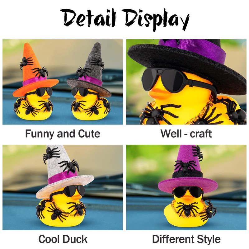 wonuu Spiders Rubber Ducks for Halloween, Car Dashboard Decorations Duck for Office Desk Ornament Accessories with Witch Hat Glasses Chain Spider (Black)