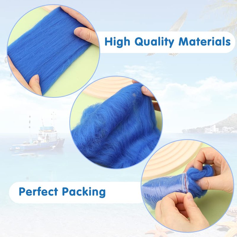 WONVOC Needle Felting Wool 80 g, 8 Colors Nature Wool Roving, Felting Wool Bulk, Wool Roving for Needle Felting, for DIY Craft Materials and Felting Wool Craftsmen, 10g/Color, Blue