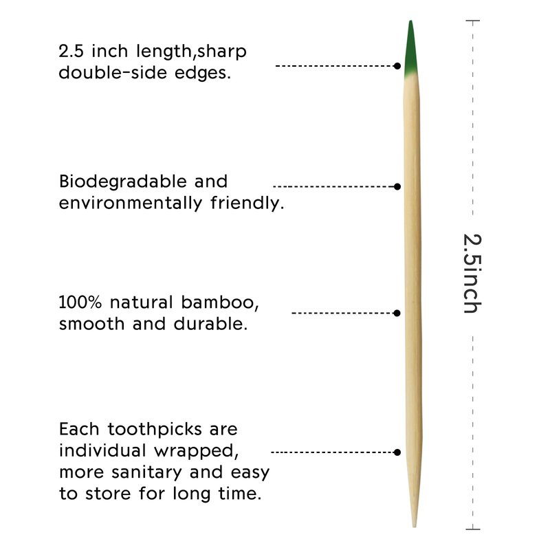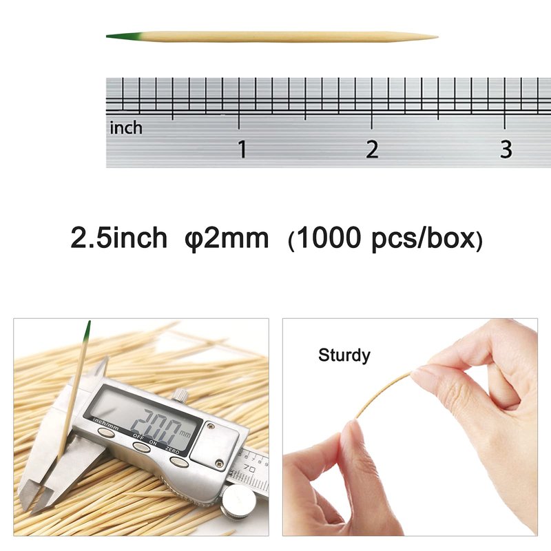 - SPECIFICATION -Mint toothpicks design 2.0mm diameter,2.5 inch long,double point;full-body polished and well-selection at factory, Sturdy & Smooth, no splintery & no awful smell.