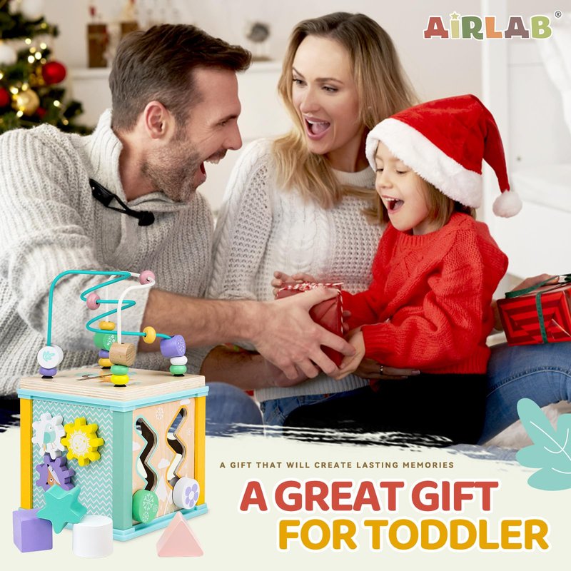 - Safety First: Airlab activity cube is meticulously crafted from sturdy wood with smooth, rounded edges and non-toxic paint. The detachable top enhances versatility, allowing for two separate toys when recommended for babies between 12 months to 18 months. Each piece is deliberately crafted to be large, making it particularly suitable for toddlers to grasp and manipulate, ensuring seamless playtime