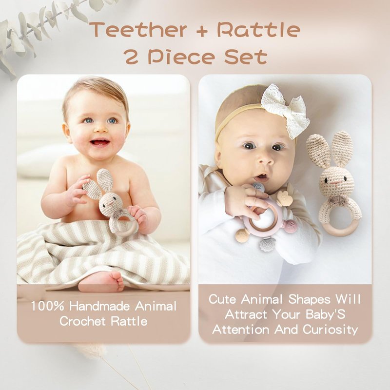 - 💐【Exquisite Newborn Gift】Rattle and teether set can improve the coordination between baby's hands and eyes. Not only does it relieve gum pressure, it also makes a great addition to your baby shower toy. Our wooden toy sets make heartwarming handmade gifts for newborns, baby boys, girls, and infants that fit seamlessly into baby showers, baby announcements, organic pregnancy gifts, and holiday celebrations like Christmas, Thanksgiving, Easter, and more ;
