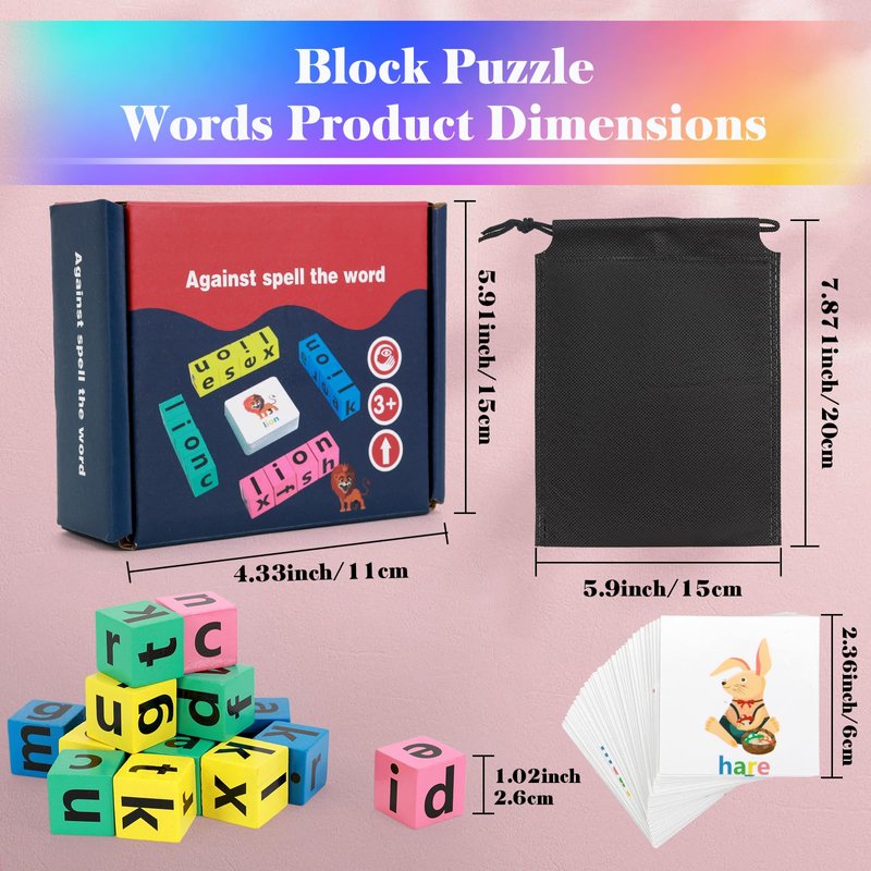 - ใ๐๐ฆ๐ฉ๐ซ๐จ๐ฏ๐ ๐๐ก๐ข๐ฅ๐'๐ ๐๐๐ข๐ฅ๐ข๐ญ๐ข๐๐ฌ ๐๐ง ๐๐ฅ๐ฅ ๐๐ฌ๐ฉ๐๐๐ญ๐ฌใColorful blocks and cards are good for improving young children's color perception. Word cards and alphabet blocks for spelling are good for improving children's brain power, imagination and creativity. Deepen the memory of words and expand the mind.