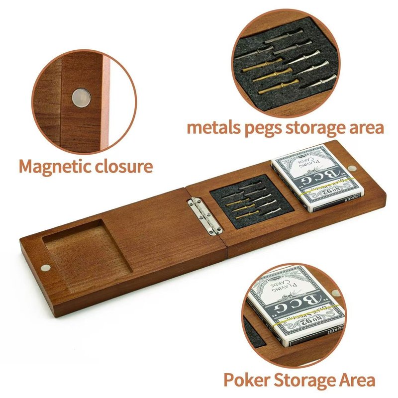 Wooden Cribbage Board Game Set, Travel Cribbage Board with Storage and Collapsible, with Magnetic Lock / 9 Metal Pegs/Full Deck of Cards, Family Board Games for Kids and Adults