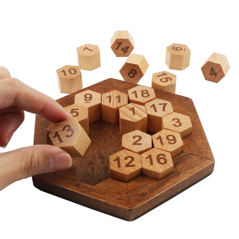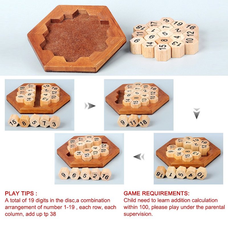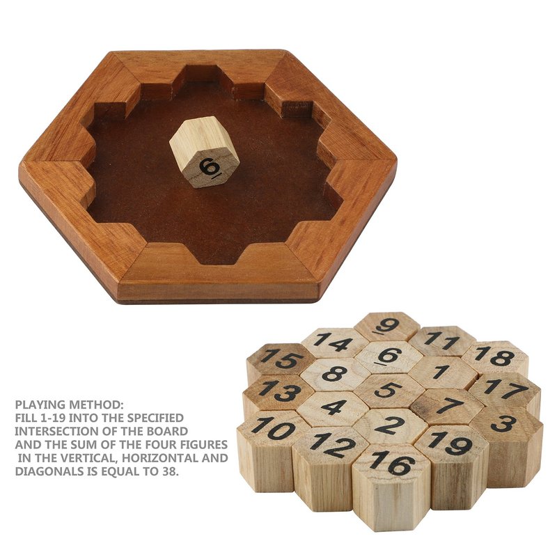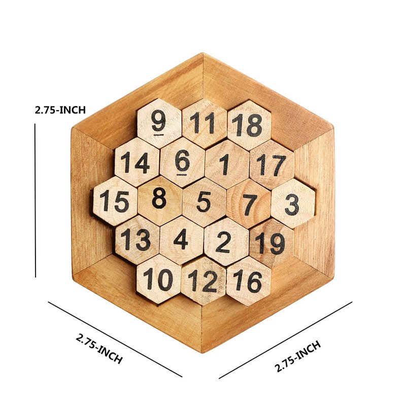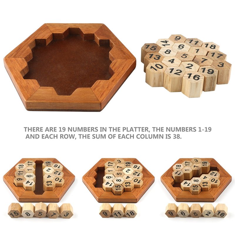 Wooden Digital Platter Puzzle,Classical Puzzle Toys Brain Teaser Wooden Hexagon Digital Puzzle Toys,Digital Game Number 19 Sum Equal to 38 Math Board Game Toy for Kids and Adults