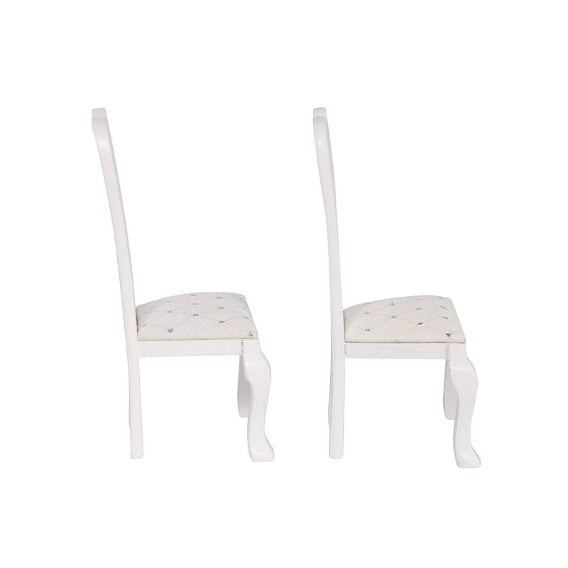 - Fine Details: These dolls’ chairs are made from a detailed white wooden frame, with intrinsic details on the legs. The soft fabric is a beautiful white/cream color, with silver accents.