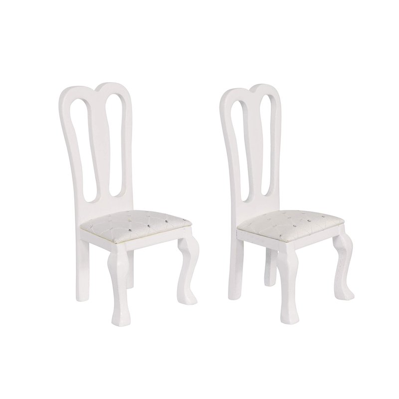 Wooden Dollhouse Dining Chairs, Set of 2, Accent Chairs for Doll Houses, Miniature Furniture, White, Upholstered, for 3 inch to 6 inch Dolls