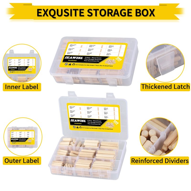 - 【PROVIDE EXQUISITE STORAGE BOXES】: Different from the bagged model which is commonly confused with sizes on the market, IEAWISL has divided the 9 different sizes of wooden pins into 9 grids in order to avoid the confusion of sizes after you receive the products, and each grids is marked with clear size labels for your convenience and storage at any time. We want the box delivered to you to be perfect, so we strengthen the sturdiness of the box and solve the trouble of box breakage.