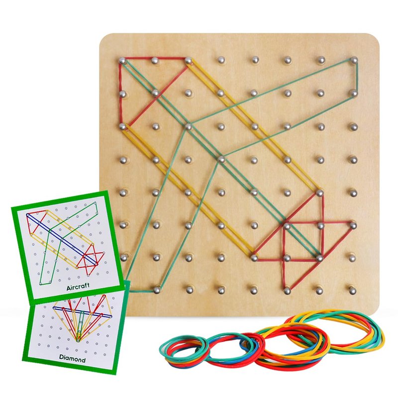 - Geometrical Board: This wooden geoboard comes with 64pcs of nails, 24 pattern cards (including 5 empty cards & 19 geometric cards), and latex band packs, providing everything needed for endless creative play. The board measures 7 x 7 x 0.6 inches and weighs 12.3 ounces, making it a versatile and portable learning tool.