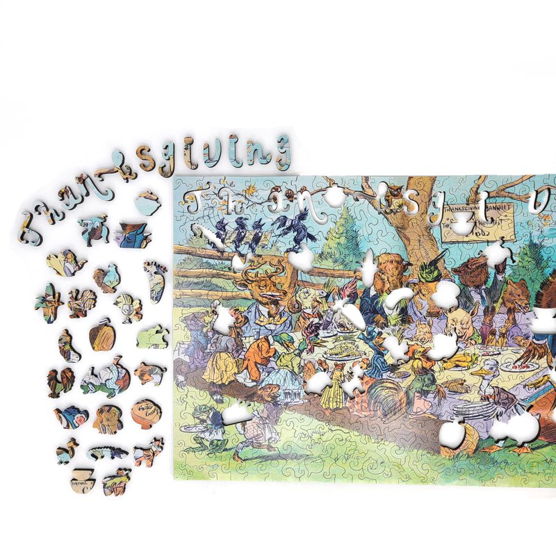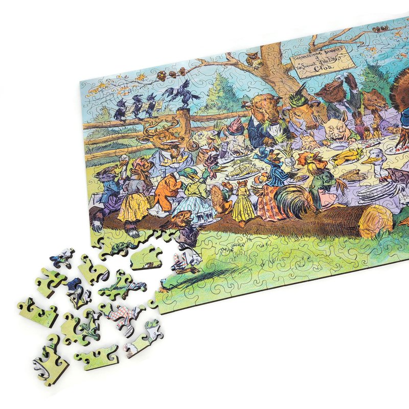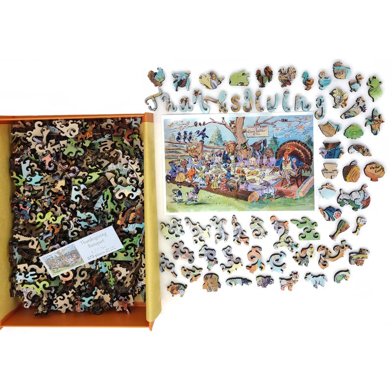 Wooden Jigsаw Puzzle for Adults - Uniquely Shaped Pieces - Made in The USA by FoxSmartBox - 373 Pieces - Thanksgiving Banquet