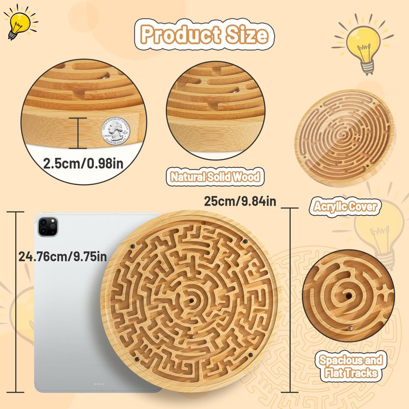 - 【Fun Puzzle Maze Game】This marble maze is a puzzle toy suitable for all ages. For kids, the labyrinth puzzle help improve concentration, develop logical thinking and problem-solving skills. For middle-aged people, it can kill time and relieve stress. For seniors, maze puzzles are a great way to keep their brains active.