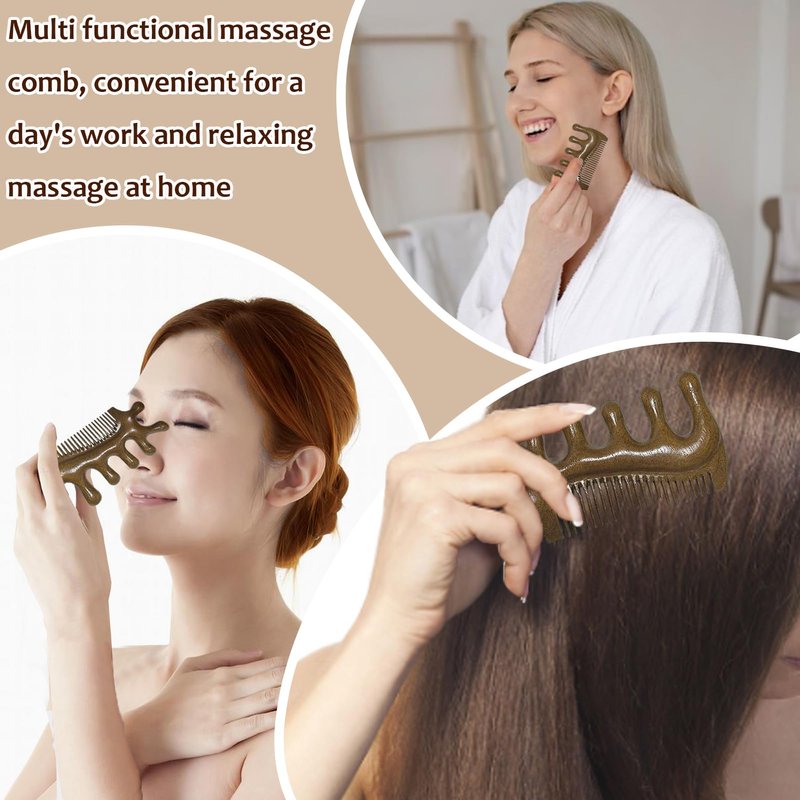 - Natural Material-Made from high-quality green sandalwood, this massage comb is polished to perfection and emits a light, natural fragrance. The smooth and delicate surface and edges ensure a comfortable grip without the risk of skin irritation. This comb combines gua sha massage with hair and beard grooming, boasting anti-static properties that are gentle on both skin and hair. Its compact size makes it easily portable, fitting conveniently into a pocket or handbag.
